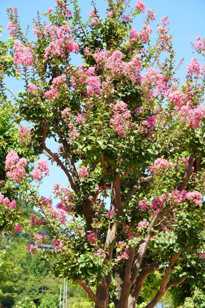 「百日紅」の名の通り、開花期間が非常に長いのも特徴です。6月下旬から咲き始め、夏のピークを経て、9月頃まで楽しむことができます。この長い期間、庭や公園を彩り続けてくれるため、シンボルツリーとしても人気があります。
